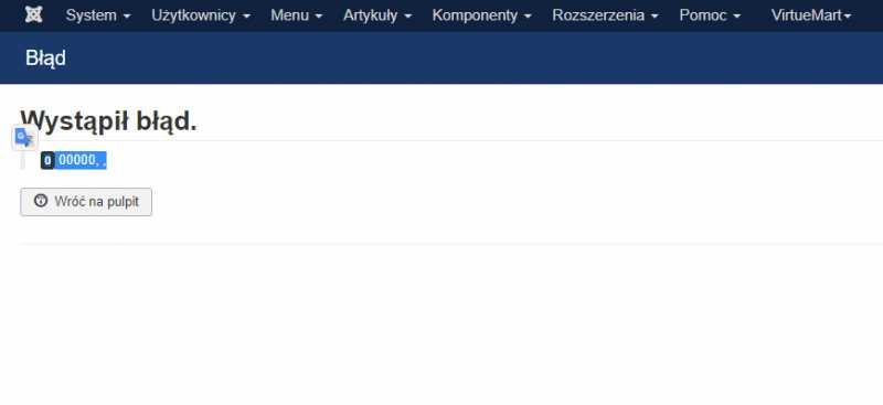 I had to change Database driver from MySqli to MySql (PDO). Product excel-like manager for Virtuemart stopped working. The error is only "0 00000, ,"