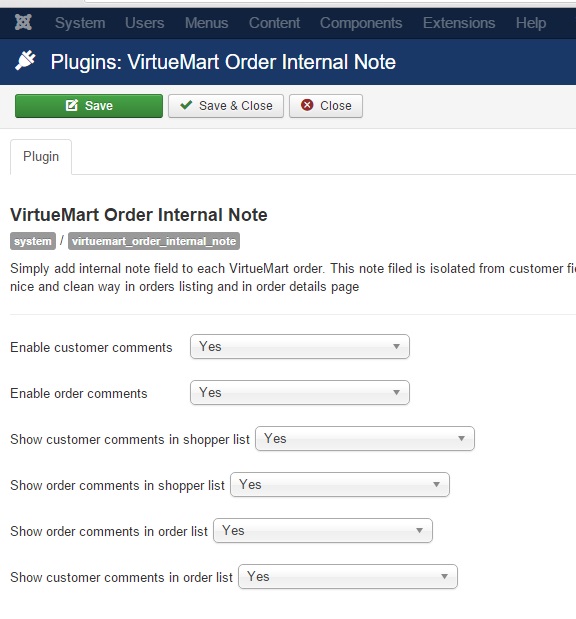 This plugin enables VirtueMart back-end users to add notes for customers and orders.