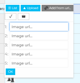 here we can specify direct urls. [NARRATOR opens the “List” tab] On the first tab we can reorder our images [NARRATOR drags some random image to show that it can be dragged] . When we are done, we should click on this icon [NARRATOR shows checkmark icon. Then NARRATOR closes the image picker with the ESC key] .