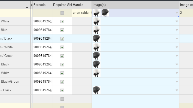 This works vice versa , so I can just copy image link to memory, and then paste it to the cell directly [NARRTOR opens https://apps.holest.com/temp/velja2020/raider-helmet-green.jpg in the browser and does visit url. NARRATOR copies browser address bar url to memory CTRL+C. NARRATOR then enter the app and do right click, then “Paste” on the valiant cell]. We see varint got an image we pasted, and we also see the list of product images got updated. We can also use a GUI editor. [NARRATOR double clicks on the image cell of some product to open the editor] .