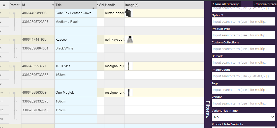 We are now seeing all products we have that miss one or more images. Unlike “ Variant has image ” we do see all other variants so we can see the situation more clearly and take appropriate action.