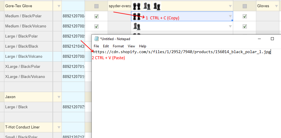 When I copy an ‘Images column’ cell from variant row I will get that single variant image url [NARRATOR picks a variant image cell with image and does CTRL+C. NARRATOR then enters Notepad and does CTRL+V. NARRATOR shows Notepad] .