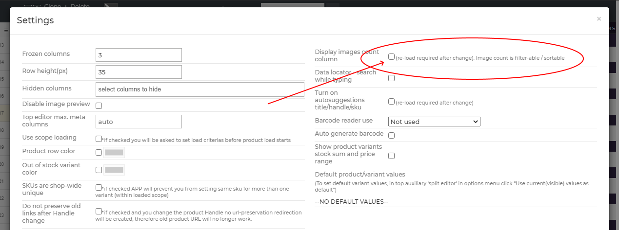 If we open settings [NARRATOR opens Config->Settings and shows “Display images count column” checkbox. NARRATOR shows settings for a while then closes settings popup]. After we turn this setting on or off , we need to reload the app [NARRATOR refreshes the browser tab].